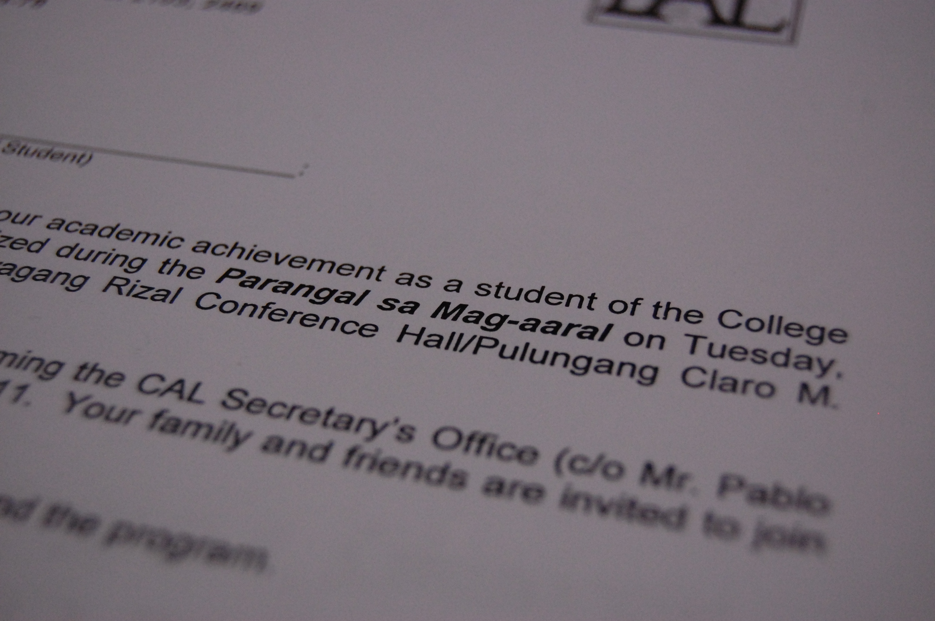 I have never attended Parangal sa Mag-aaral. I’ve received this award a number of times as an undergrad. But I took it for granted.